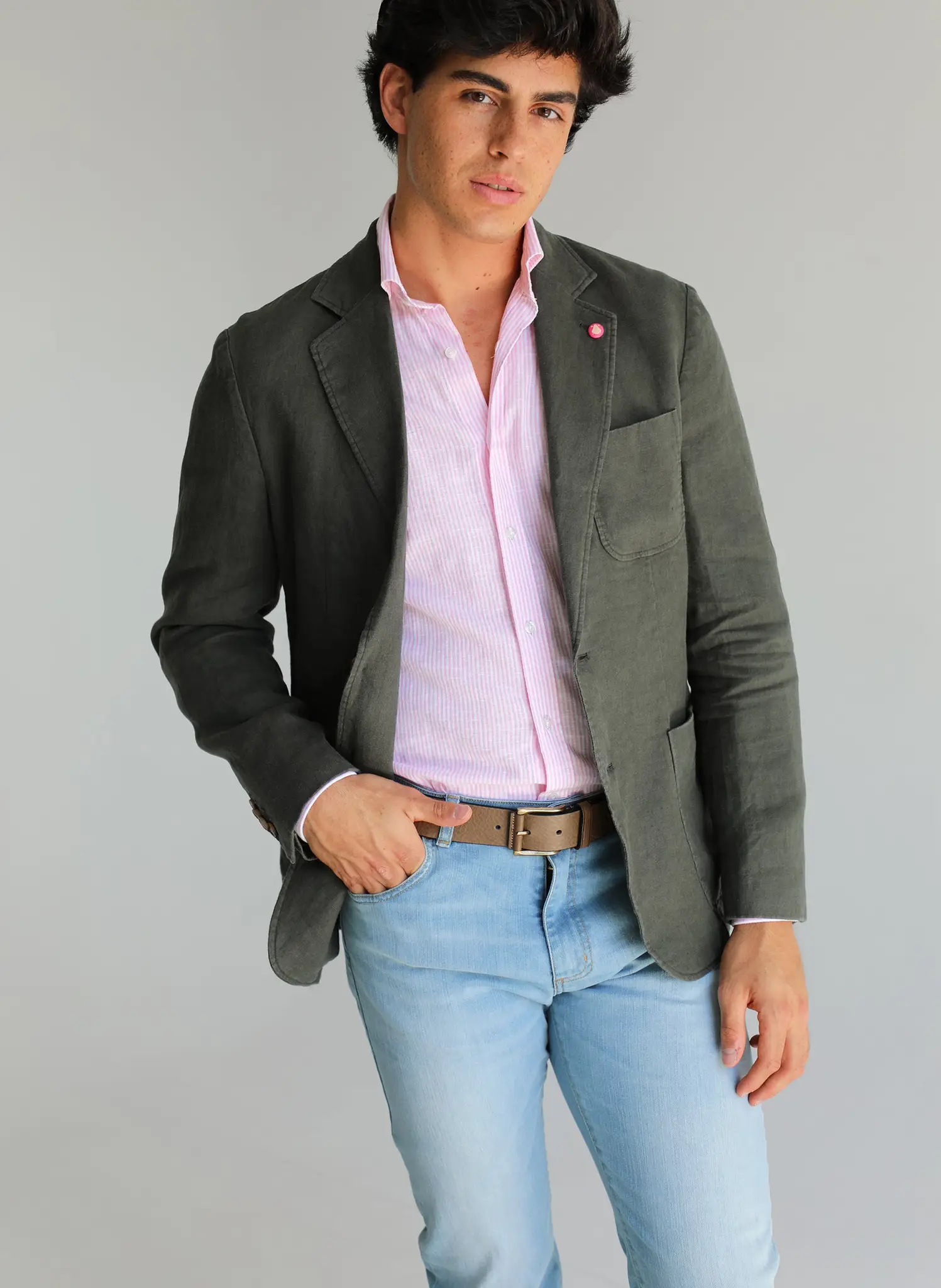 Americana Lino Verde Kaki Hombre