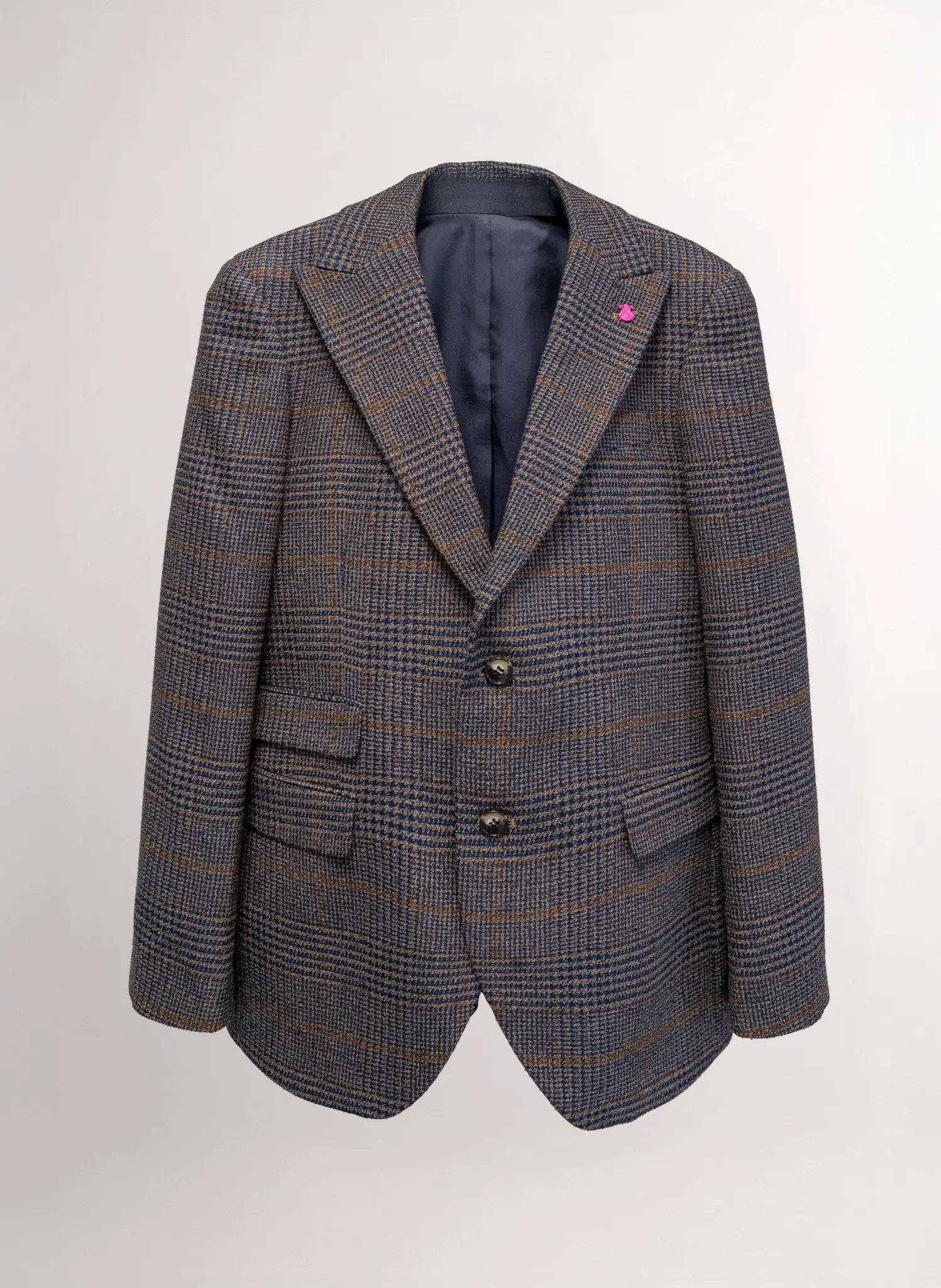 Americana de tweed marrón, tejido clásico que se popularizó en España a lo largo del siglo XX, gracias a la influencia de la moda internacional. Su textura cálida y resistente evoca elegancia y estilo atemporal, perfecta para el campo o la ciudad, combinando tradición y confort.