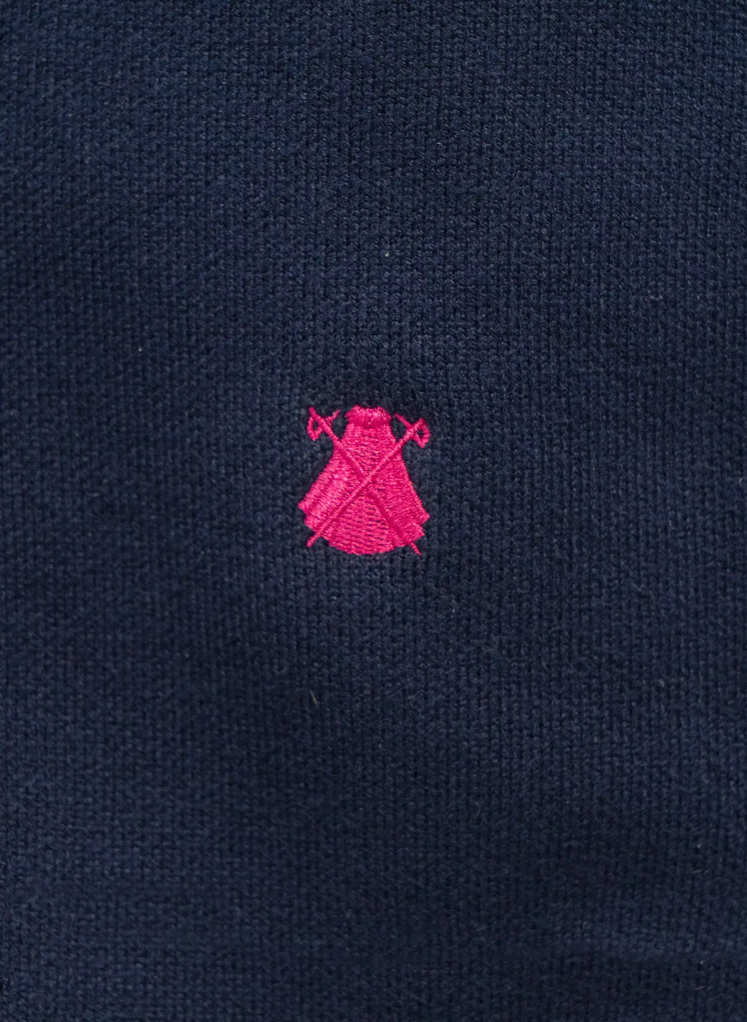 - Logo pequeño bordado en tono rosa Capote, ubicado en el lateral izquierdo.