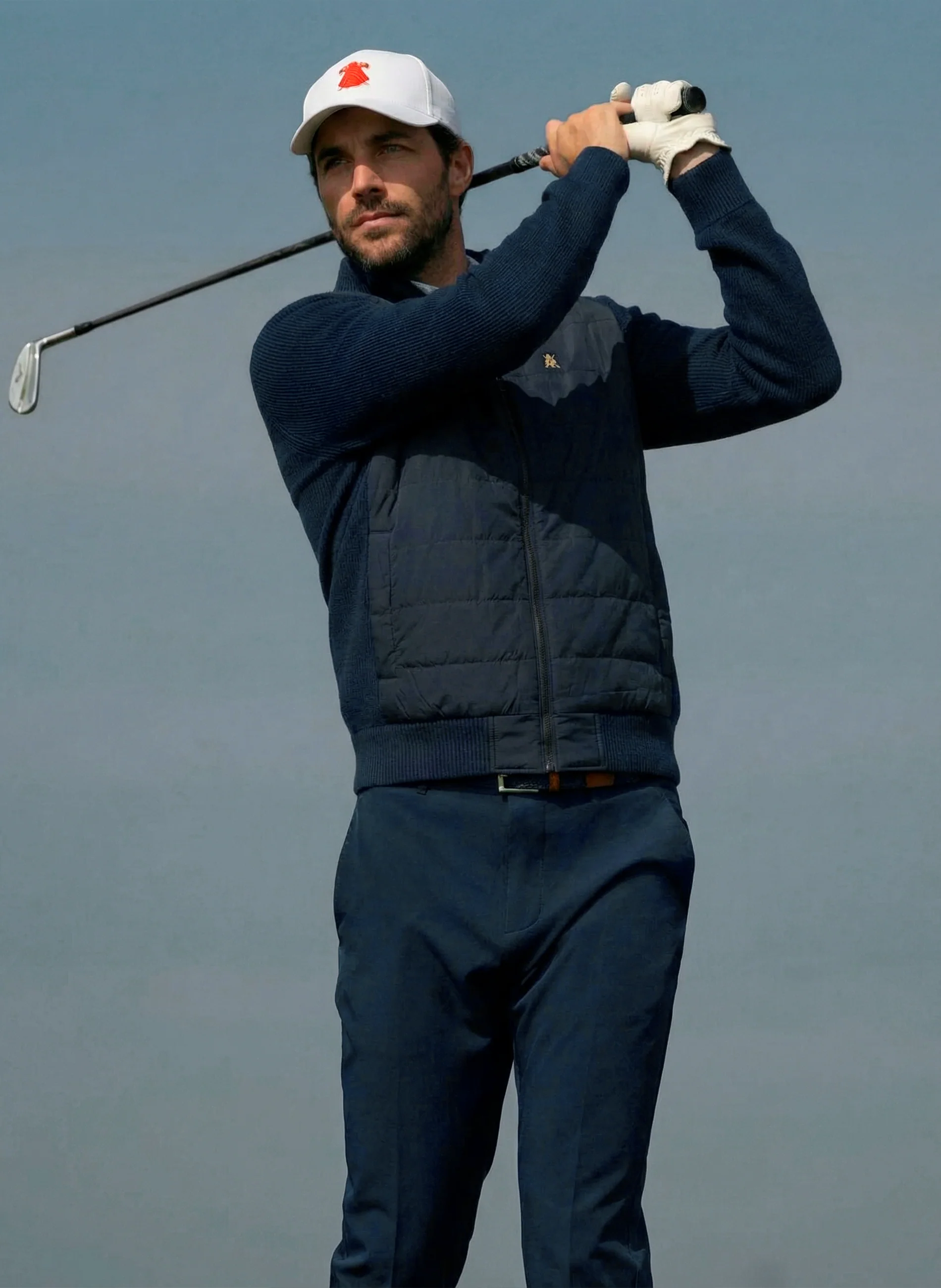Chaqueta acolchada en marino profundo, ligera y cómoda. Ideal para moverse entre el campo de golf y las calles de la ciudad. El logo de Capote Golf serigrafiado, aporta un detalle discreto y sofisticado, reflejando estilo y espíritu español.