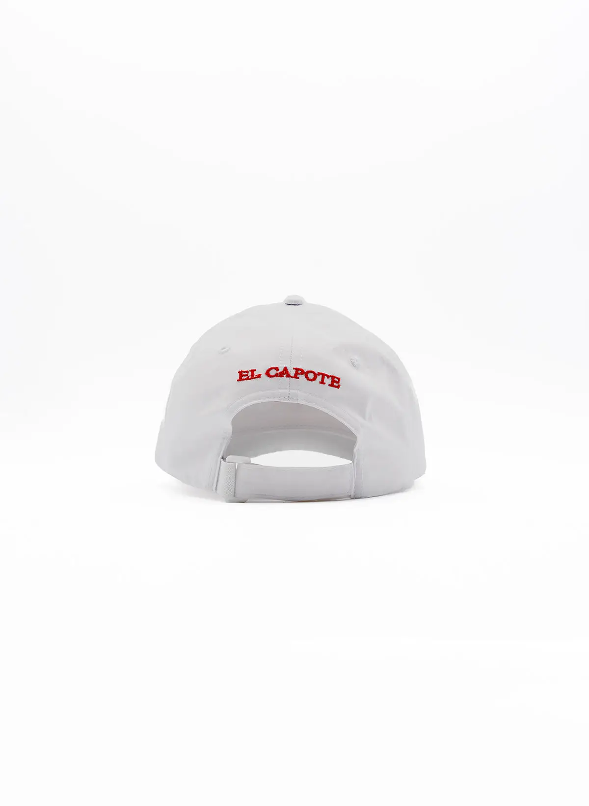 Gorra blanca con bordado de El Capote en hilo rojo y borde de hilo amarillo en el frente. ¡Perfecta para hacer deporte! Esta gorra está diseñada para protegerte del sol durante tus partidas de golf, tenis, pádel o para ir en barco o en la playa!!